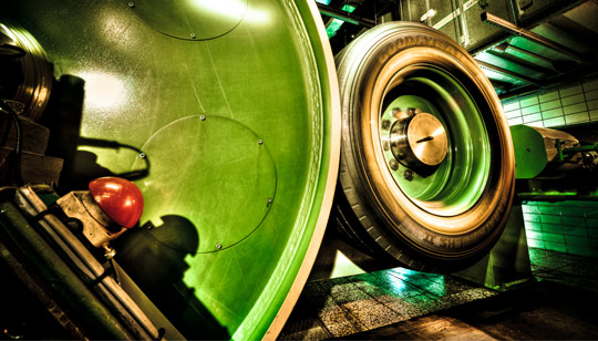 您輪胎的橡膠中混合了高達(dá)30種原料,原料的比例取決于輪胎的性能目標(biāo)。它是由多種類型的橡膠,填充料及其它原料構(gòu)成,在被稱為班伯里密煉機的巨型攪拌機中把它們混合在一起,生產(chǎn)出一種將用于壓延的黑色的粘性的膠料。壓延