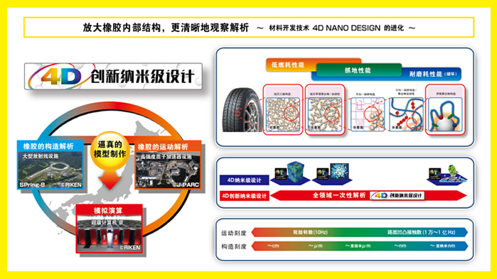 回顧?quán)嚨撈盏钠放瓢l(fā)展歷程,技術(shù)創(chuàng)新是出現(xiàn)頻率最高的關(guān)鍵詞。鄧祿普技術(shù)團隊持續(xù)探索尖端科技,最新開發(fā)“4D創(chuàng)新納米級設(shè)計”技術(shù)運用大型放射光設(shè)備“Spring-8”、高強度質(zhì)子加速器“J-PARC”和超級計算機“京”,從納米級微觀領(lǐng)域真實再現(xiàn)橡膠分子結(jié)構(gòu)及運動形態(tài),使原材料的開發(fā)精度和效率實現(xiàn)了質(zhì)的飛躍,全面提升了輪胎產(chǎn)品的低油耗性能、抓地力性能和耐磨耗性能。